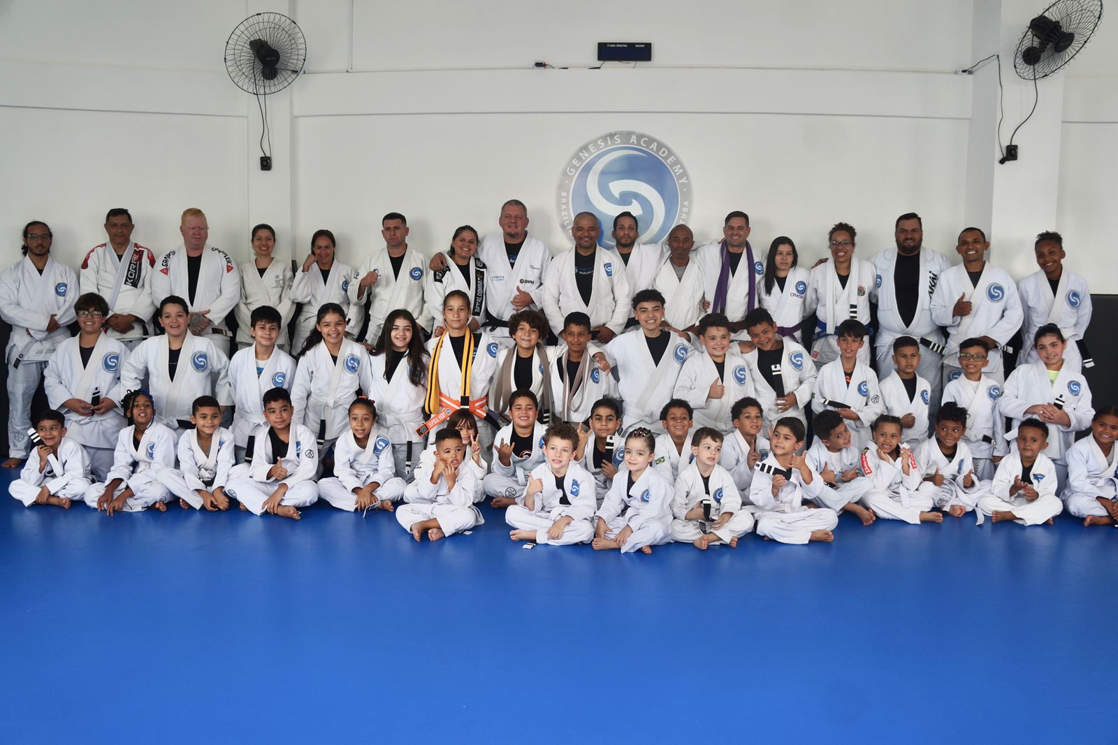 Sistema ERP com reconhecimento facial, área de luta (tatame) de excelência, Vestiarios completos, área de espera, área externa amplamente ventilada, bebedouro industrial e Toten de carregamento de celular.